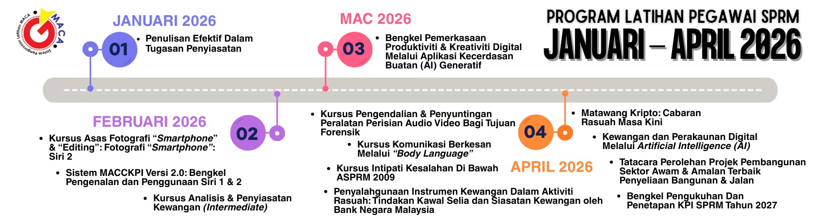 Menawarkan pelbagai bentuk program latihan yang menyasarkan penyertaan daripada kalangan penjawatan awam (Jabatan/Agensi Kerajaan) dan penglibatan secara langsung daripada sektor swasta.