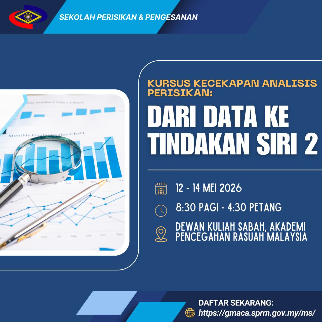 Akademi Pencegahan Rasuah Malaysia (MACA) melalui Sekolah Perisikan & Pengesanan menjalankan KURSUS KECEKAPAN ANALISIS PERISIKAN : DARI DATA KE TINDAKAN SIRI 2 secara atas talian. Kursus ini adalah KURSUS TERBUKA.